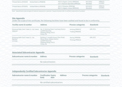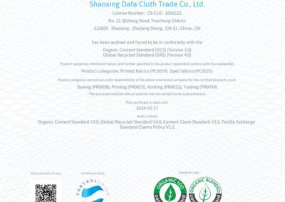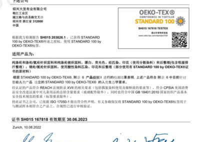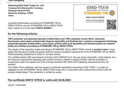 DAFA成立于2003年,現已發展為一家集研發、生產與國際貿易于一體的高端紡織綜合企業,始終專注于創新驅動、卓越品質與可持續發展。公司配備完善的CNAS標準自有研發中心,并布局針織、染整、印花等全流程制造工廠,協同全球貿易體系,為國際一線品牌提供高性能、定制化的面料解決方案。所有運營環節均嚴格遵循國際規范,先后通過OEKO-TEX?GRSGOTSDisney FAMAHigg FEM等多項全球權威認證。